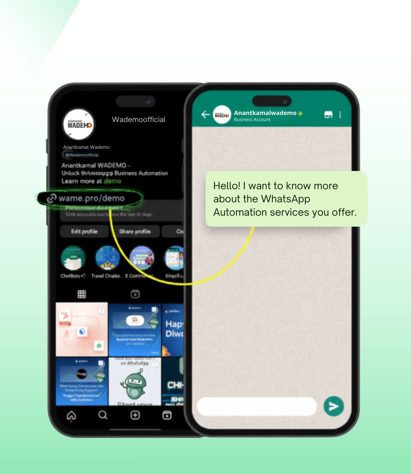 Increase sales and foster meaningful connections with WADEMO WhatsApp Link Generator. Enhance customer satisfaction and maximize business impact by giving your customers a direct line to reach you instantly!