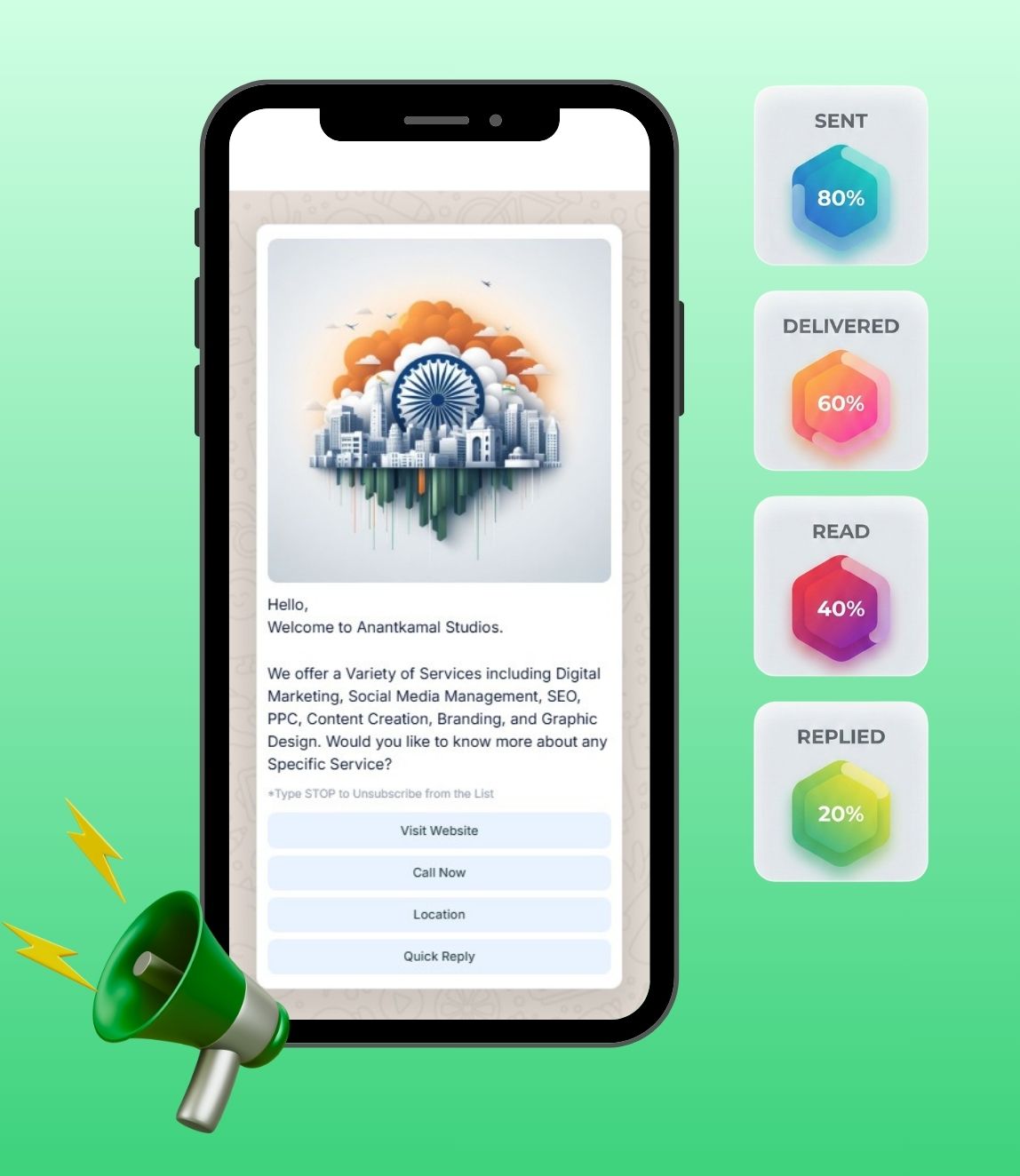 With Anantkamal Wademo as your WhatsApp Business API partner, you can expand your marketing and sales operations seamlessly as your business grows. With built-in security and compliance, Anantkamal Wademo supports your growth initiatives reliably and at scale.