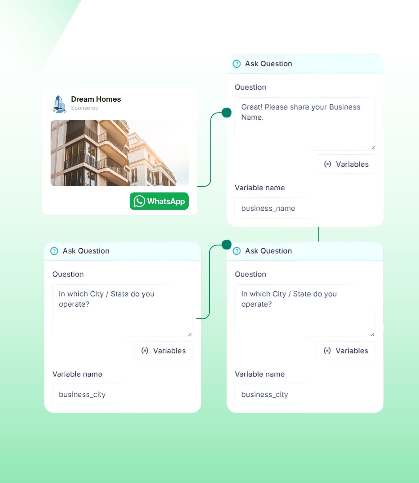 Create your free account, connect your WhatsApp business number, and set up your business profile.